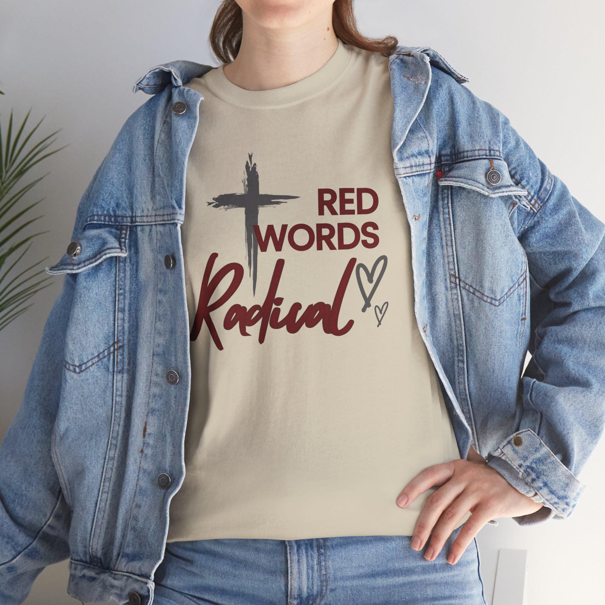 Red Words Radical T-Shirt - Dark Cross with Hearts